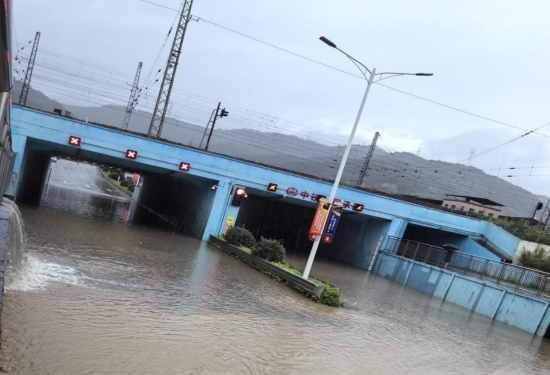 經(jīng)過(guò)現場(chǎng)察看,由于短時(shí)間降雨量太大,龍津河水位暴漲高于通道出口頂標高,河水倒灌至下穿通道導致交通中斷,下穿通道水泵房三臺水泵全部啟動(dòng)抽水也無(wú)法滿(mǎn)足排水要求。公司防汛小組到達現場(chǎng)后,連夜組織人員拉好警戒線(xiàn),設置警示標志,防止車(chē)輛進(jìn)入下穿通道,并調度4輛應急車(chē)輛及時(shí)排水并清洗路面;同時(shí),提前與鐵路部門(mén)、交警部門(mén)聯(lián)系,暫時(shí)封閉該段線(xiàn)路。經(jīng)過(guò)6小時(shí)的不斷抽水,路面已基本暢通,搶險過(guò)程未發(fā)生任何險情和人員傷亡。