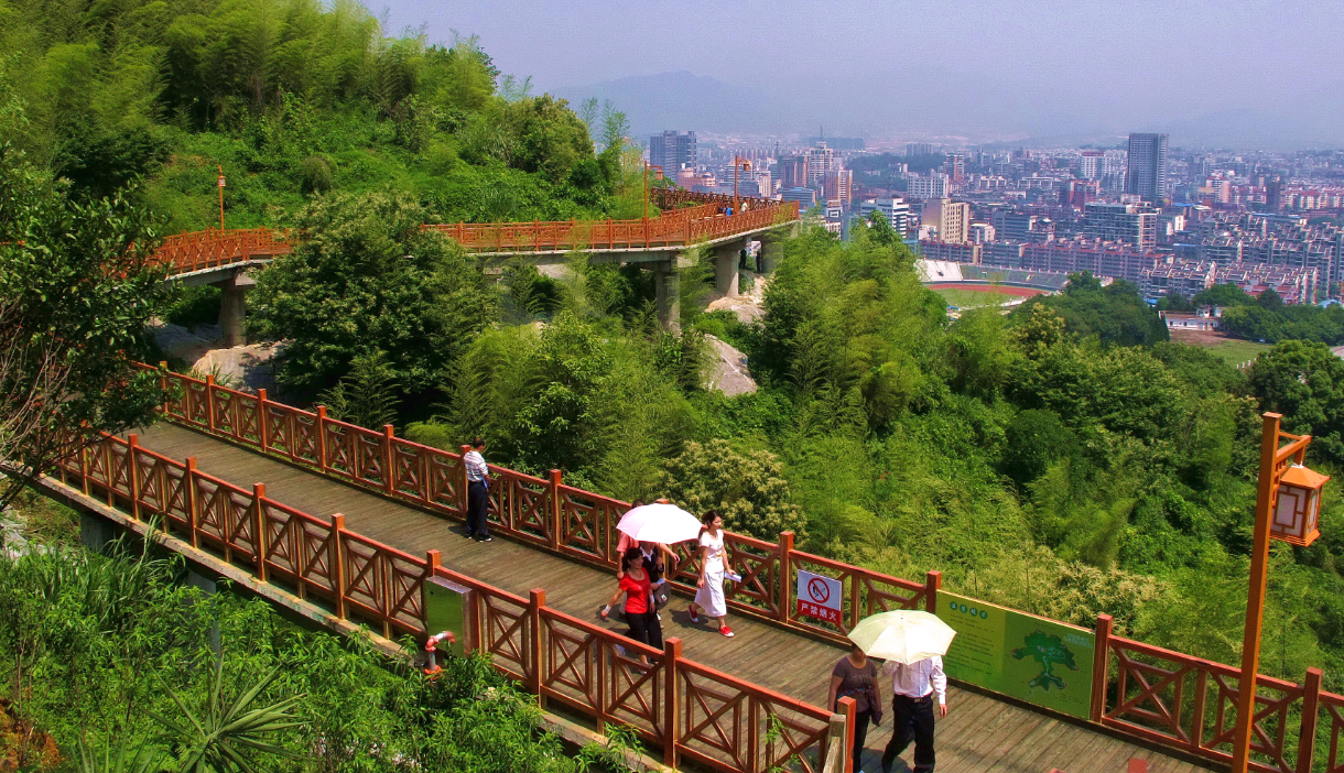蓮花山底南環(huán)路地面標高為330米,山頂標高為490.606米,山高160米左右,山頂已開(kāi)發(fā)為休閑場(chǎng)所,并建有世紀鐘樓,山腳可挖掘的景點(diǎn)不多,因此決定在半山腰開(kāi)辟一條市民休閑的木棧道,將公園增加一個(gè)休閑觀(guān)光的好場(chǎng)所,并可成為蓮花山一道亮麗的風(fēng)景線(xiàn)。因此在半山腰422米高程建設一條環(huán)山的木棧道。為盡量少破壞山體植被,木棧道采用棧道橋形式,全長(cháng)3781.88米,全寬3.5米(包括欄桿寬度),凈寬3.0米,蓮花山棧道橋工程總投資7610萬(wàn)元。