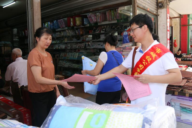 志愿者向居民和商業(yè)店鋪發(fā)放宣傳資料《創(chuàng )建全國文明城市倡議書(shū)》《創(chuàng )建全國文明城市應知應會(huì )知識》《創(chuàng )建全國文明城市知識問(wèn)卷》,向居民和商業(yè)店鋪講解了“創(chuàng )城”的意義,并與執法大隊人員一起對沿街不規范的店鋪進(jìn)行整改。