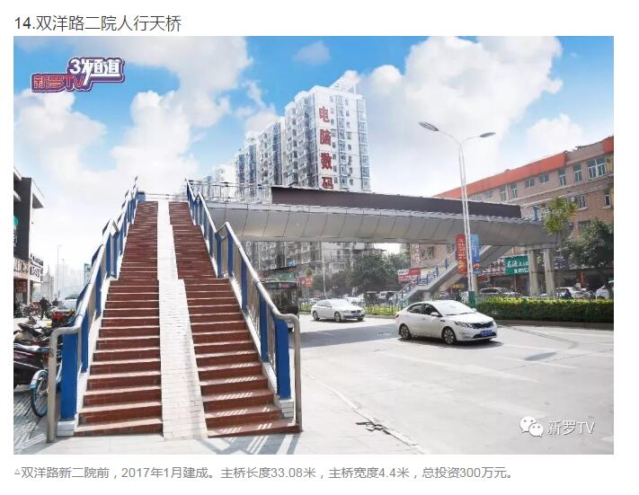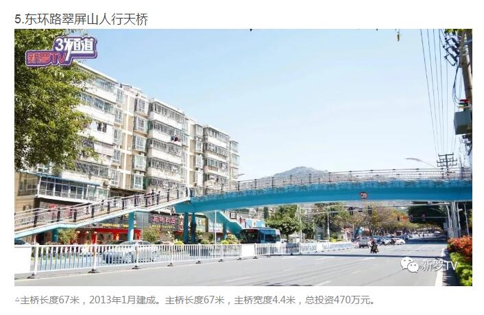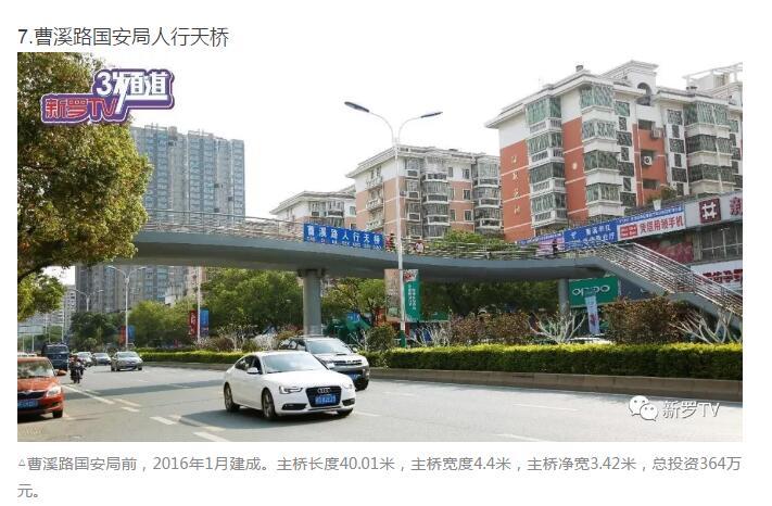 年來(lái),市委、市政府加大市政基礎設施投入,大力推進(jìn)人行天橋建設。截止2017年底,中心城市共興建20余座人行天橋。