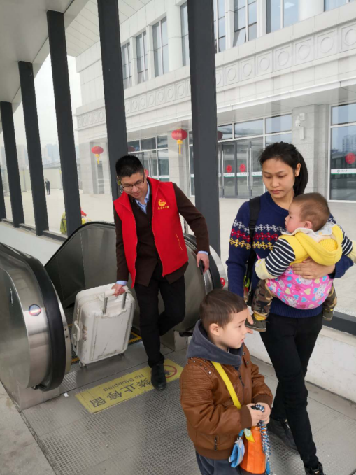 在火車(chē)站服務(wù)最需要幫助的有三種人:一種是殘疾人,一種是老年人,另外一種就是一手抱著(zhù)小孩、一手提著(zhù)行李的旅客。因新建火車(chē)站剛剛啟用,“請問(wèn)進(jìn)站口在哪兒?一位拿著(zhù)大包小包還帶著(zhù)孩子的旅客問(wèn)到。“在這邊,我來(lái)幫你?!?/span>志愿者一邊指著(zhù)路一邊接過(guò)旅客手中的包,一路將她送至進(jìn)站口。