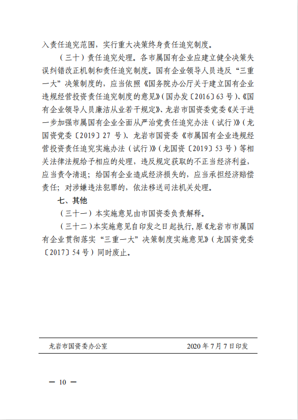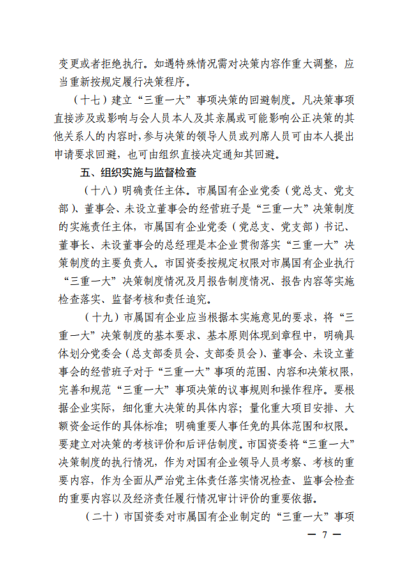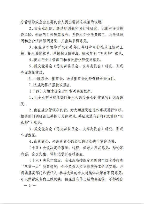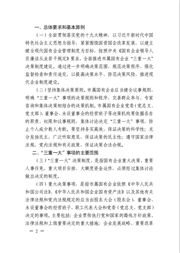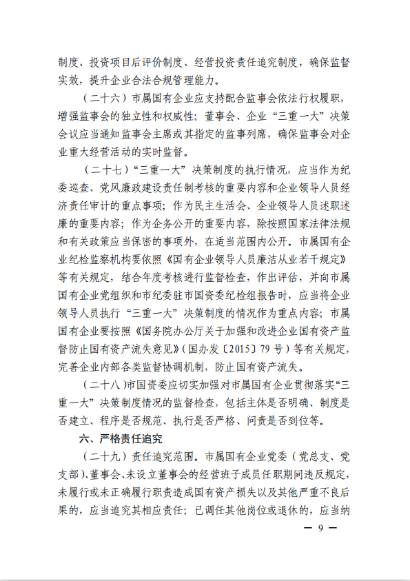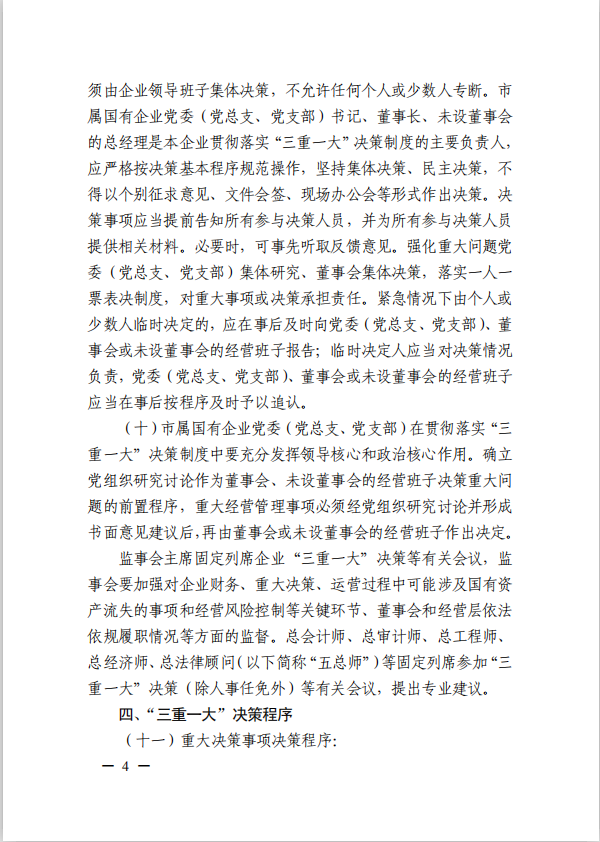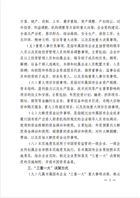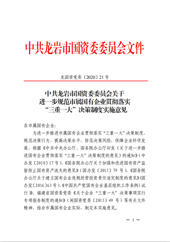 關(guān)于進(jìn)一步規范市屬?lài)衅髽I(yè)貫徹落實(shí)“三重一大”決策制度實(shí)施意見(jiàn)(國資黨委[2020]21號)