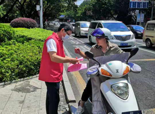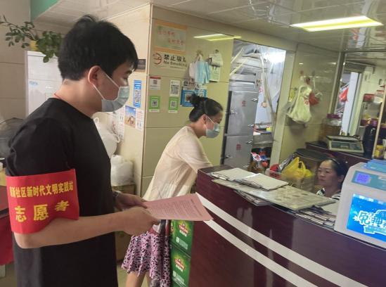 八月末,天氣炎熱,市政集團的志愿者們身著(zhù)紅馬甲,不畏臟、不怕累,各司其職,分時(shí)段分批次在蓮新社區范圍內開(kāi)展創(chuàng )城活動(dòng),其中清潔崗的志愿者們帶著(zhù)夾子、掃帚、垃圾袋等清掃工具,對街道路面的紙屑、塑料袋、煙頭等生活垃圾進(jìn)行清掃,將亂停亂放的自行車(chē)整齊的排列在停車(chē)位上,使得街道整潔一新。宣傳崗的志愿者們走進(jìn)商鋪,發(fā)放文明宣傳標語(yǔ),動(dòng)員商鋪店主一起,注意門(mén)前三包,在平時(shí)營(yíng)業(yè)工作中,遇到不文明行為時(shí),進(jìn)行及時(shí)規勸,讓市民自覺(jué)遵守,規范自身行為,積極踐行“共創(chuàng )共享”的創(chuàng )城理念,共同為創(chuàng )建文明城市出一份力。交通崗的志愿者們通過(guò)積極引導道路交通,向過(guò)往行人科普創(chuàng )城溫馨小知識,加強城市文明建設。