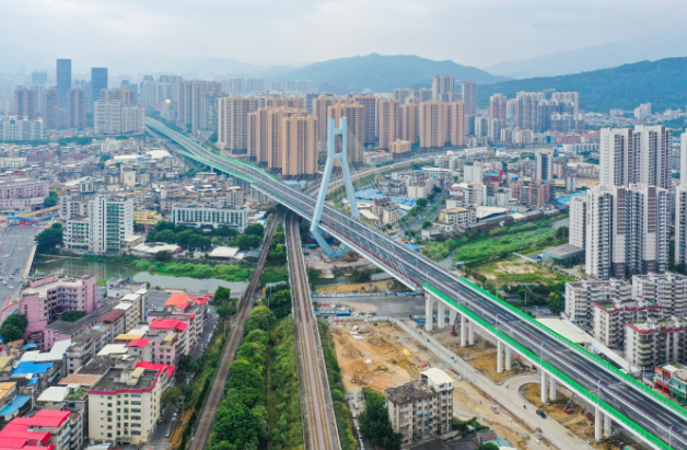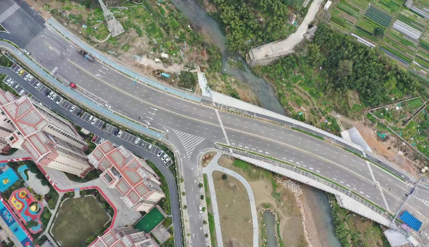 龍巖大道高架橋2013年9月開(kāi)工建設,2020年10月建成通車(chē)。該項目地面道路長(cháng)3395米,寬78米;高架橋部分長(cháng)2329米,標準段寬26米,含一座(190+150)米的獨塔雙索面斜拉橋,斜拉橋寬34.2米;葫蘆溪分洪工程長(cháng)667米,標準段結構7.5×3.9米,總投資24億元。